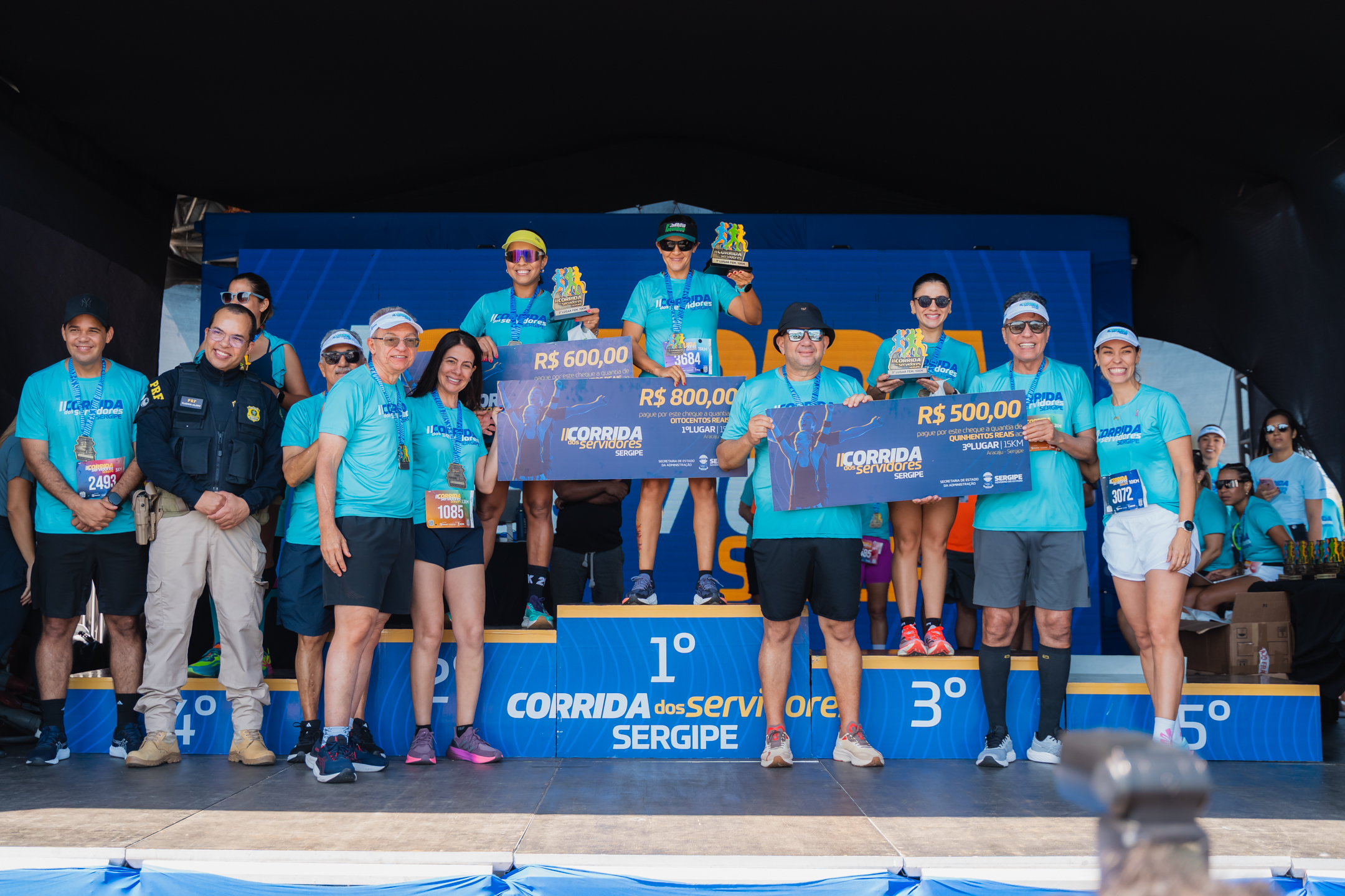 Os primeiros colocados recebem R$ 800 (15 km), R$ 700 (10 km), R$ 600 e R$ 400 (3,2 km); os segundos, R$ 600 (15 km), R$ 500 (10 km), R$ 400 (5 km) e R$ 300 (3,2 km); e os terceiros, R$ 500 (15 km), R$ 400 (10 km), R$ 300 (5 km) e R$ 200 (3,2 km).