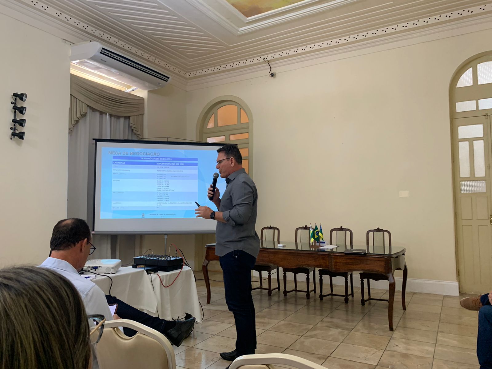 Na manhã desta terça-feira, 29, o secretário de Estado da Administração (Sead), Dernival Neto, coordenou a apresentação das ações da pasta junto a comissão de transição, coordenada pelo governador eleito Zezinho Sobral. A apresentação aconteceu a partir das 9h30, no Palácio Olímpio Campos, com as presenças dos diretores e superintendentes da Sead.