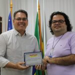 Em seu gabinete, recebeu das mãos do presidente do Sintrase, Diego Araújo, uma placa o homenageando pelo “olhar diferenciado para com os servidores da administração geral”.